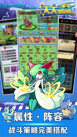 2. 收集各种宝可梦精灵,灵活运用不同的培养玩法与训练师天赋,共同成长,战斗中需学会灵活搭配,克敌制胜。