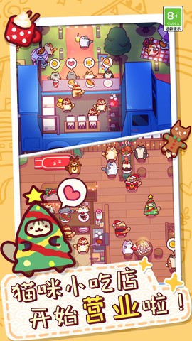 随着你解锁成就、增加宣传次数、解锁新设施、菜谱和顾客数量,都会让你的游戏之旅充满挑战与乐趣。每天登录游戏,及时完成任务,获取顾客的星星评价,努力收集更多的小鱼干!